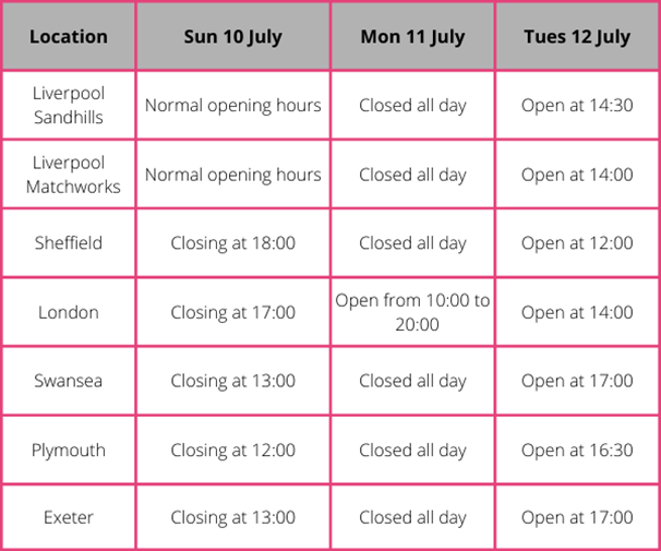 Apologies for any inconvenience caused, but don't despair as it's just for one day. We'll be back open from Tuesday 12 July.